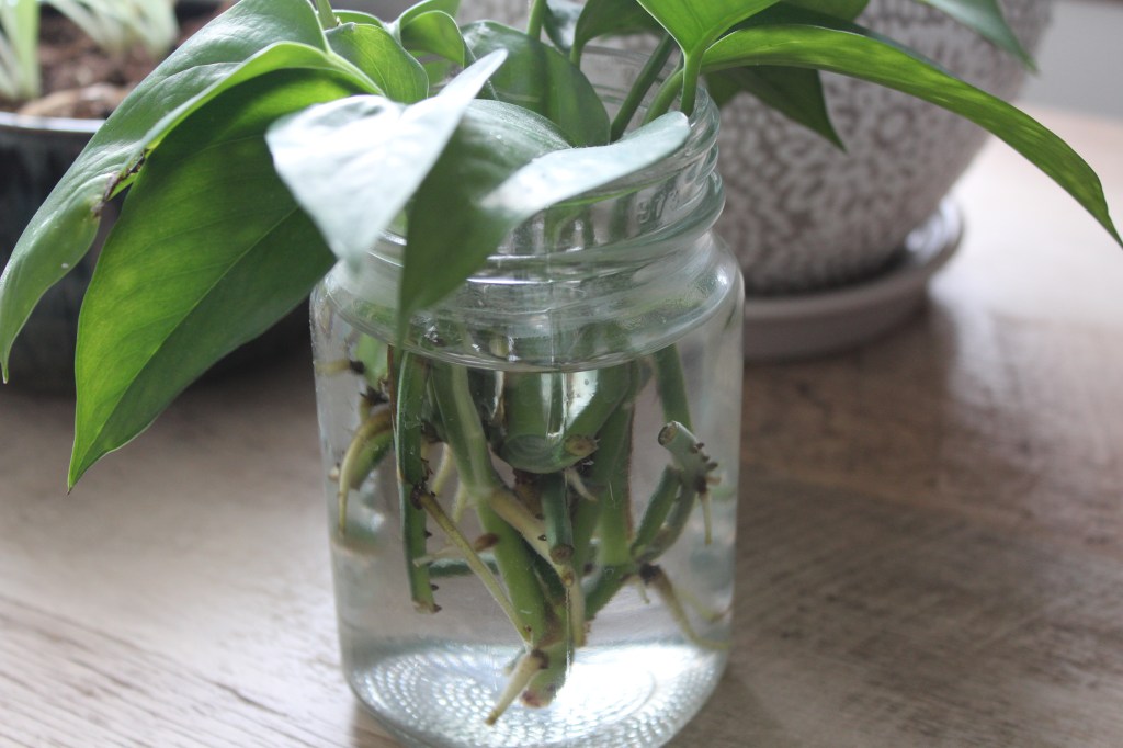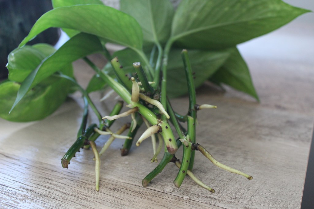 This is one of my favorite houseplants for decorating! Pothos are stunning when allowed to trail down from a table or shelf! If you propagate them, I recommend including numerous cuttings in a single pot for a fuller appearance. If you don’t like how far they trail and don’t want more, you can cut them off where you want and simply discard your cuttings. Be sure to not cut off too much at a time as that may stress out your plant. I have never cut more than 1/3 of a single stem at a time. So far, I haven’t had issues with overly stressed Pothos!